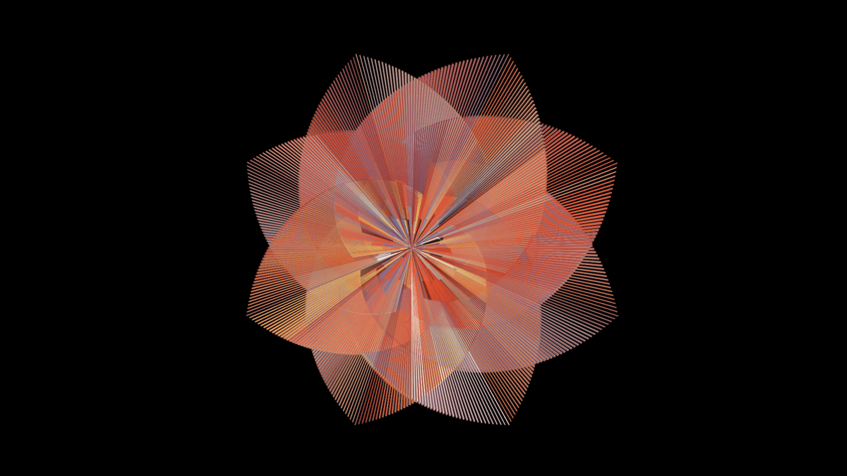 Visitations and Revisitations is a series of four pieces by Matt Rogalsky, that was performed live at the Isabel Bader Centre for the Performing Arts. Visuals for each performance featured a number of new algorithms including a circular representation of audio waveforms as well as several flowers based on spiralling primitive shapes.